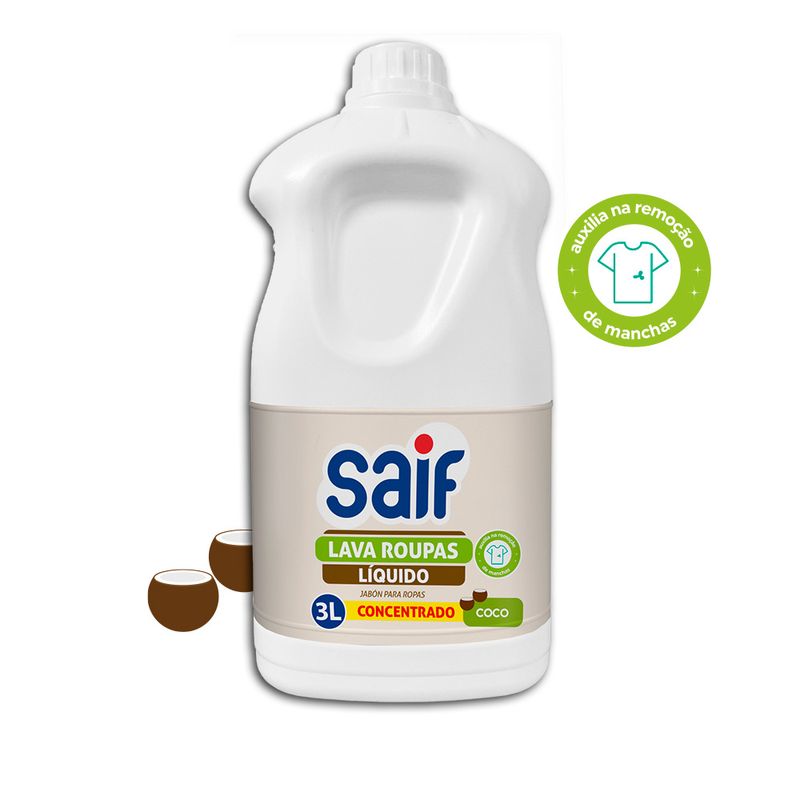 O Lava Roupas Líquido Coco Saif possui em sua composição aditivos especiais que não descolorem as roupas e reavivam as cores. Cuida das fibras e ajuda a prevenir os sinais de desgaste. Auxilia na remoção de manchas e deixa um suave perfume. Produto utilizado para lavagem de roupas de qualquer tonalidade.